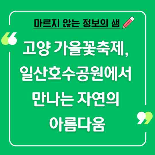 고양 가을꽃축제가 일산호수공원에서 10월 1일부터 13일까지 열립니다. 가족 나들이와 함께 화려한 꽃밭을 즐길 수 있는 기회를 놓치지 마세요!