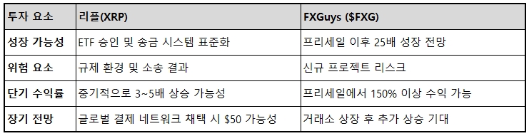 리플(XRP) vs FXGuys: 투자 전략 비교 투자 요소