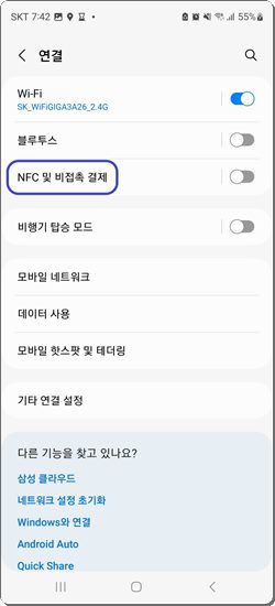 - 설정 메뉴로 이동: '설정' 메뉴로 이동하여 '연결' 또는 '네트워크 설정'을 선택합니다.