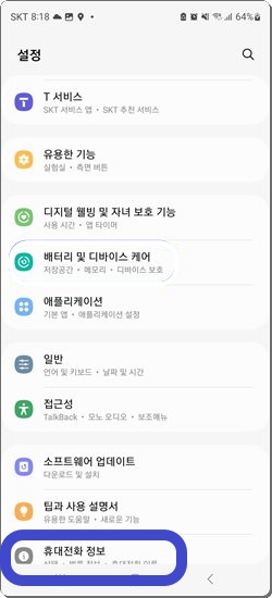 - 휴대전화 정보 선택: '휴대전화 정보'를 선택합니다.
