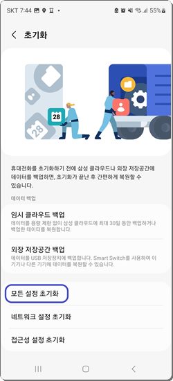 모든 방법을 시도해도 성능이 개선되지 않는다면 공장 초기화를 고려할 수 있습니다. 단, 초기화 전에 중요한 데이터를 백업하세요.