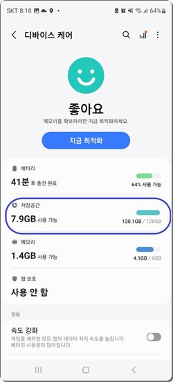 - 저장공간에서 필요없는 이미지와 동영상을 삭제하여 휴대폰 상태를 최적화합니다.