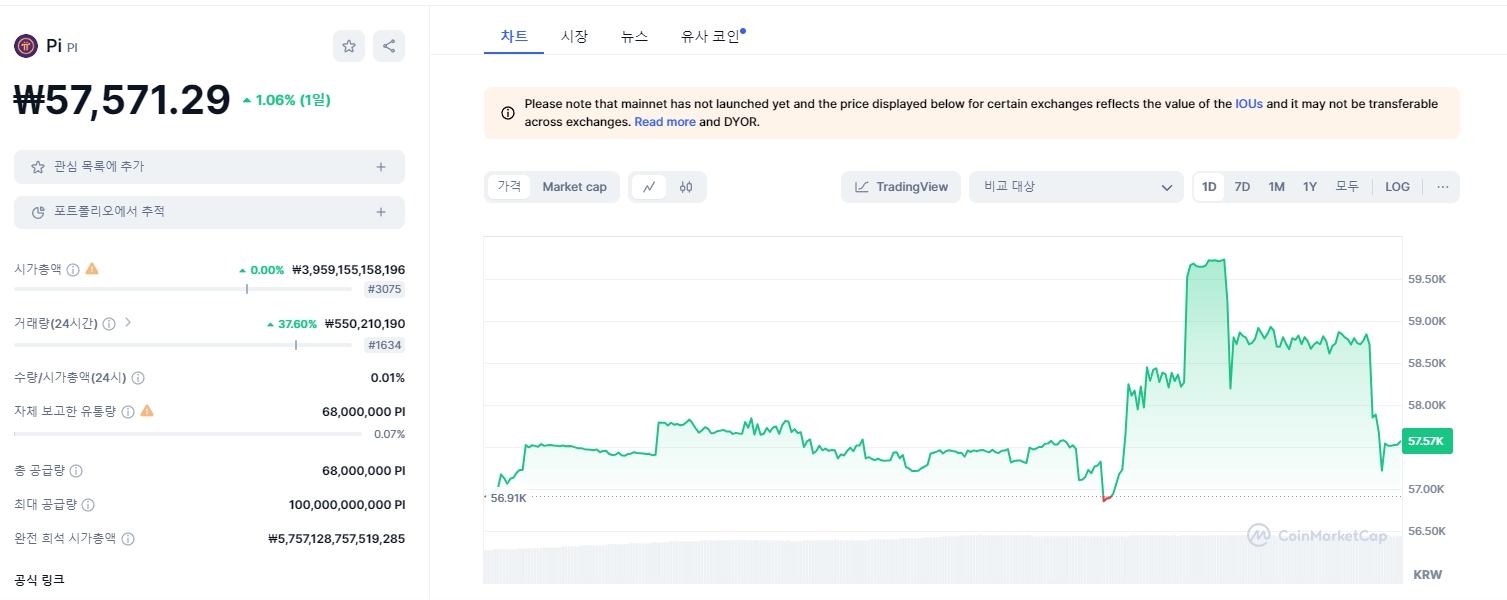 안녕하세요, 여러분! 오늘은 CoinMarketCap에서 제공하는 후오비 거래소의 파이코인(Pi Network) 시세 정보를 바탕으로 파이코인의 현재 가격 동향을 살펴보겠습니다.