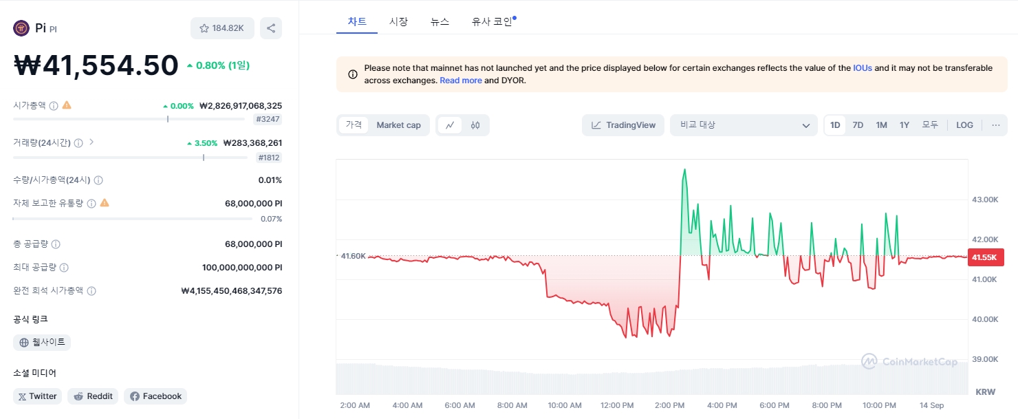 ◆ 오늘 현재 1파이 시세 41,554.50 원 (USD30.78)