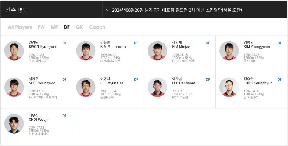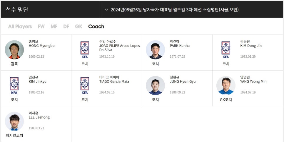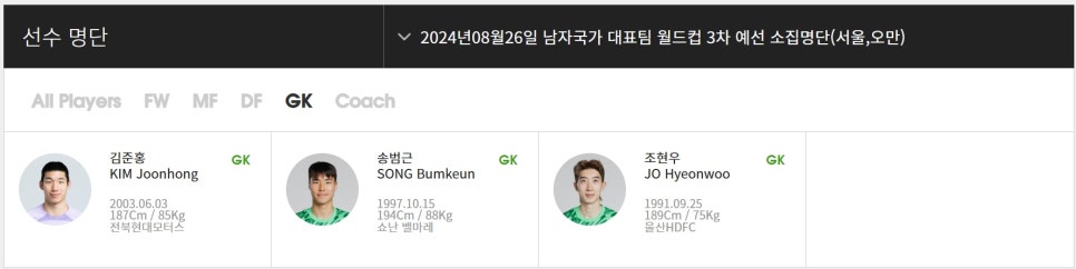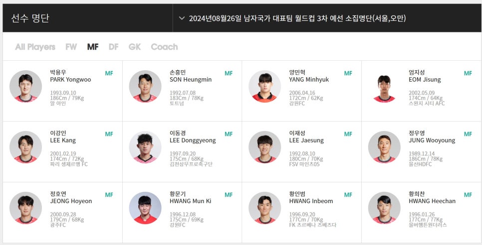 대표팀의 골문을 지킬 골키퍼로는 조현우(울산), 송범근(쇼난 벨마레), 김준홍(전북)이 선정되었습니다. 수비진에는 권경원, 김민재, 김영권 등 경험 많은 선수들이 포함되었으며, 미드필더진에는 손흥민, 황희찬, 이강인 등 해외파 선수들이 자리를 잡고 있습니다. 특히, 중앙 미드필더 포지션에 많은 고민을 했다는 홍명보 감독은 박용우와 정우영이 핵심 역할을 할 것이라고 밝혔습니다.