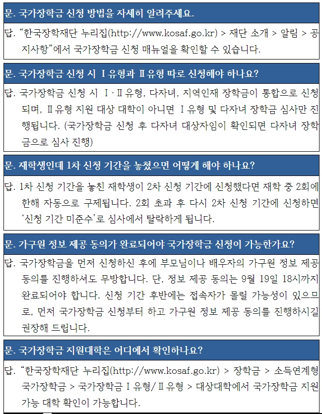 국가장학금 관련 자주 묻는 질문 요약